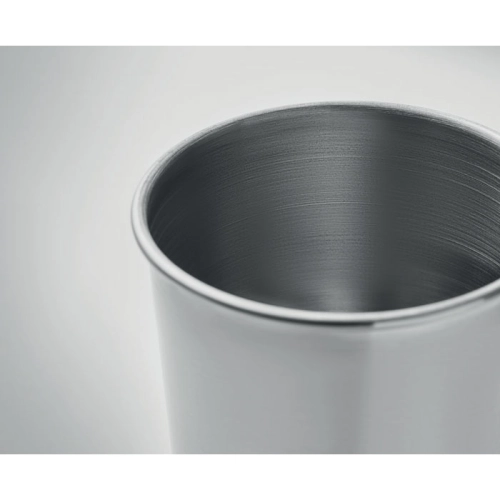 Stainless Steel cup. Capacity: 350 ml. As this is a single walled mug heat transfer can still occur.